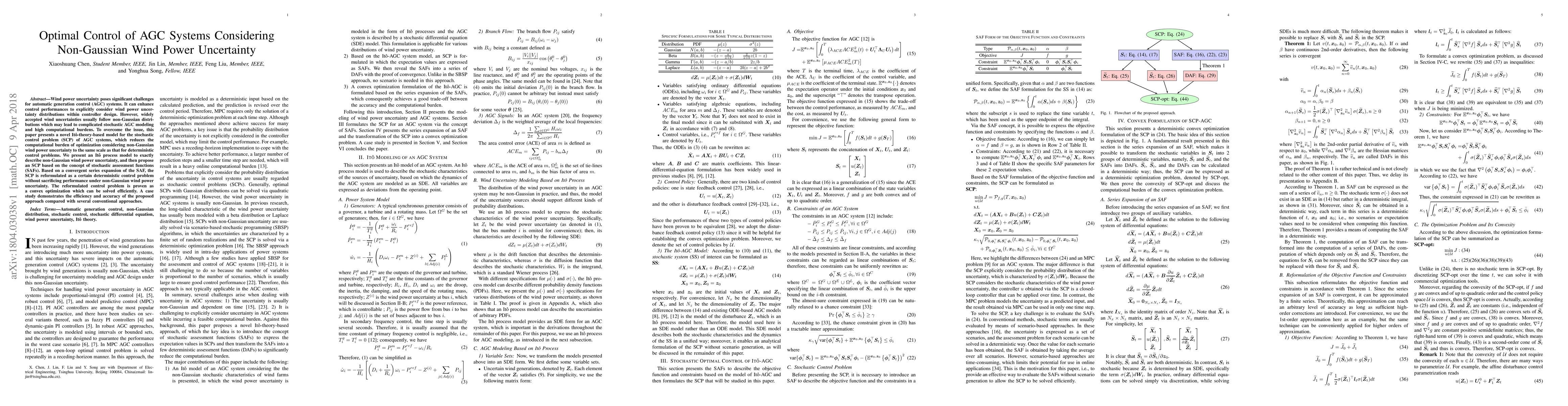 This paper introduces an Ito-theory-based model to optimally control AGC systems under non-Gaussian wind power uncertainty, reformulating the stochastic control problem into a convex deterministic optimization problem, thus reducing computational complexity. The proposed method is shown to be efficient and accurate through a comparative case study.