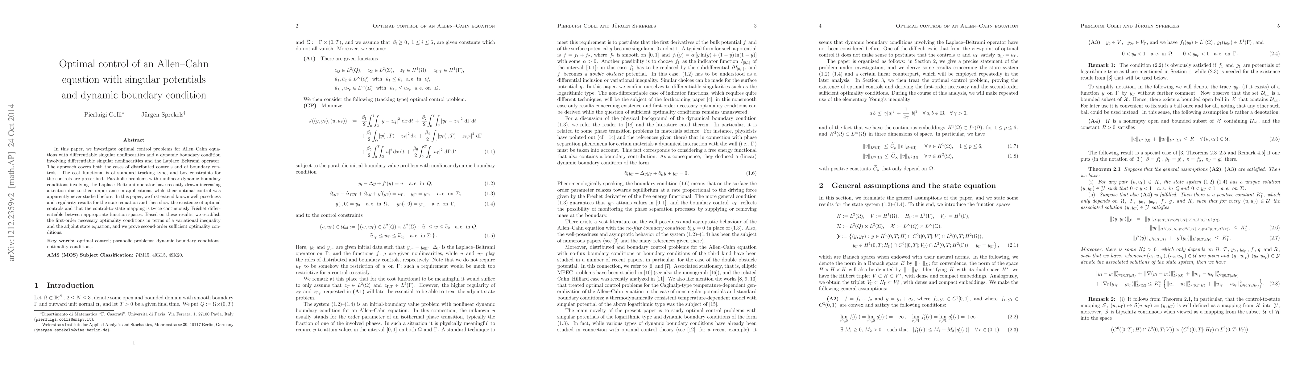 This paper explores optimal control for Allen-Cahn equations featuring singular potentials and dynamic boundary conditions, including distributed and boundary controls. It establishes the existence of optimal controls and proves necessary and sufficient optimality conditions, extending previous results for parabolic equations with nonlinear dynamic boundary conditions.