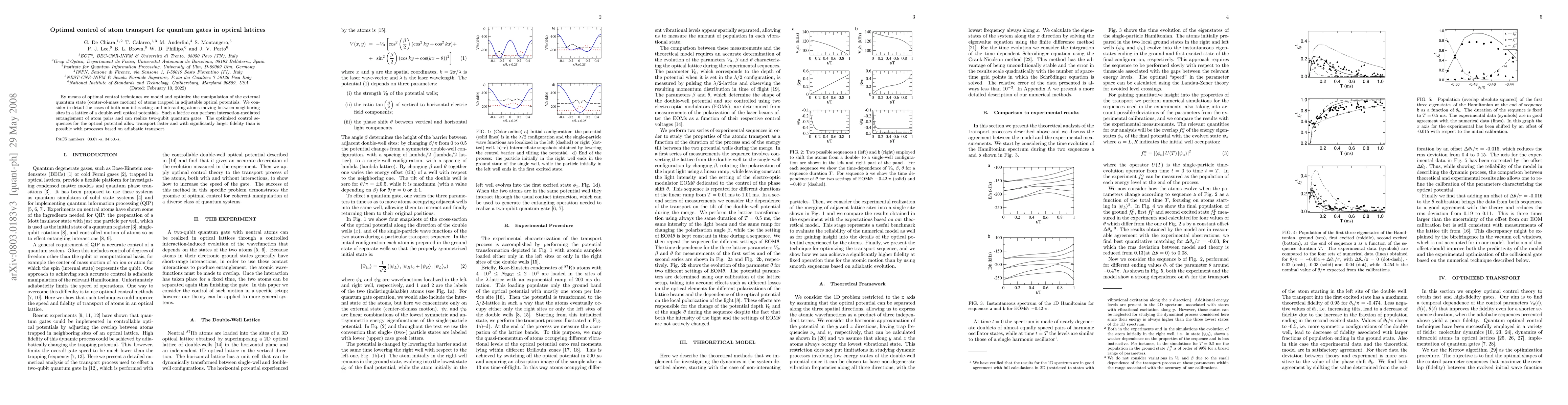 This paper utilizes optimal control techniques to optimize the transport of atoms in optical lattices for quantum gate operations, achieving faster and more faithful transport compared to adiabatic methods, especially for both non-interacting and interacting atoms in a double-well potential lattice.
