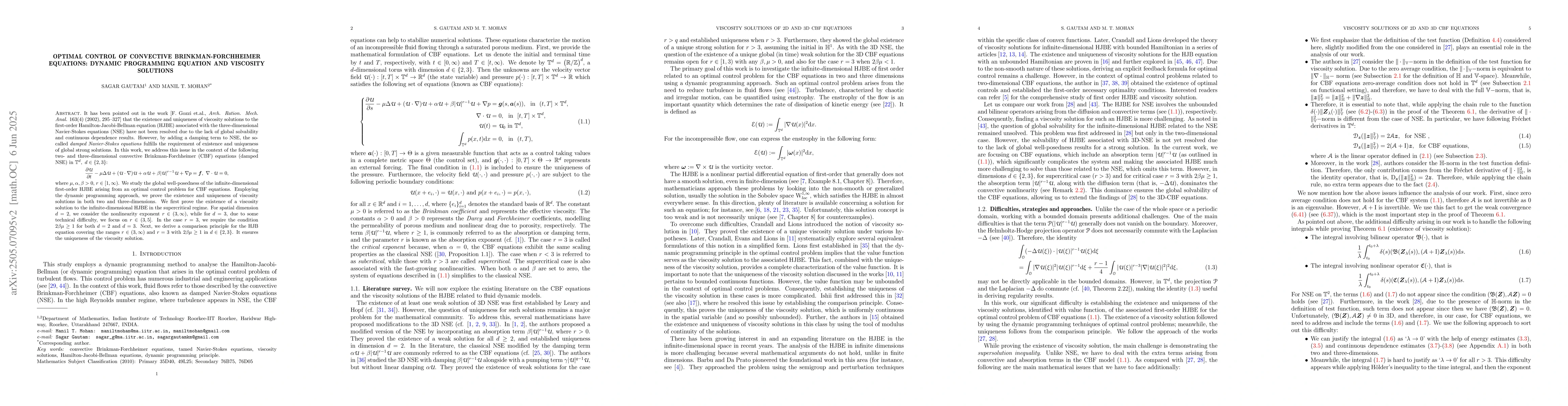 This research extends previous work on Navier-Stokes equations by addressing the issue of viscosity solution existence and uniqueness in the context of convective Brinkman-Forchheimer equations, which incorporate damping terms ensuring global strong solutions.
