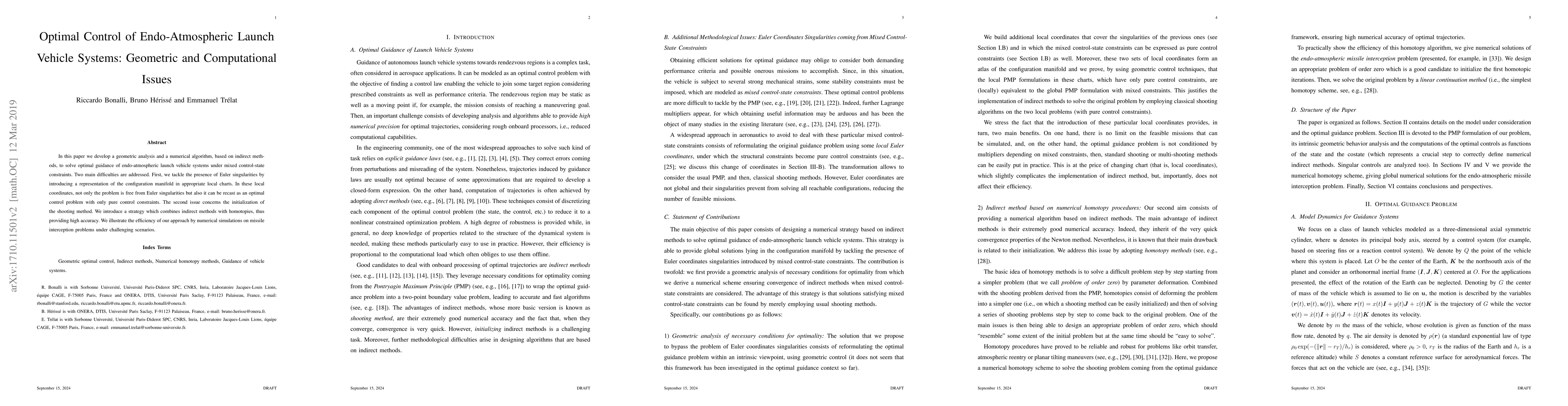 Researchers develop a new method to solve optimal control problems for endo-atmospheric launch vehicle systems, avoiding singularities and ensuring accurate solutions with numerical simulations.