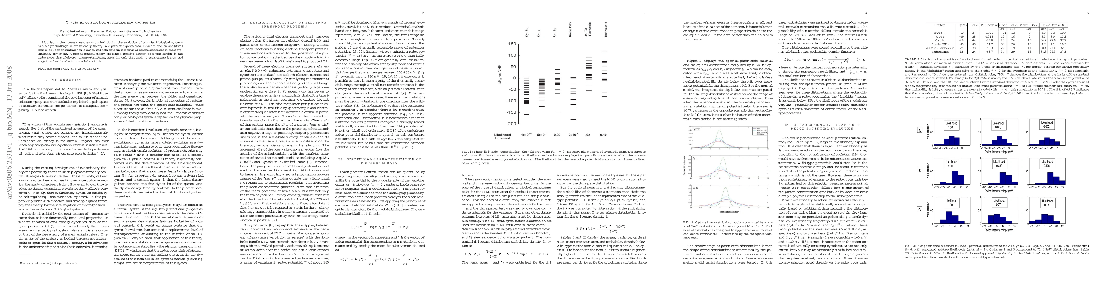 This paper presents an analytical framework showing that biochemical networks utilize optimal control strategies during evolution, evidenced by a pattern of extremization in redox potentials of electron transport proteins, aligning with optimal control theory principles.