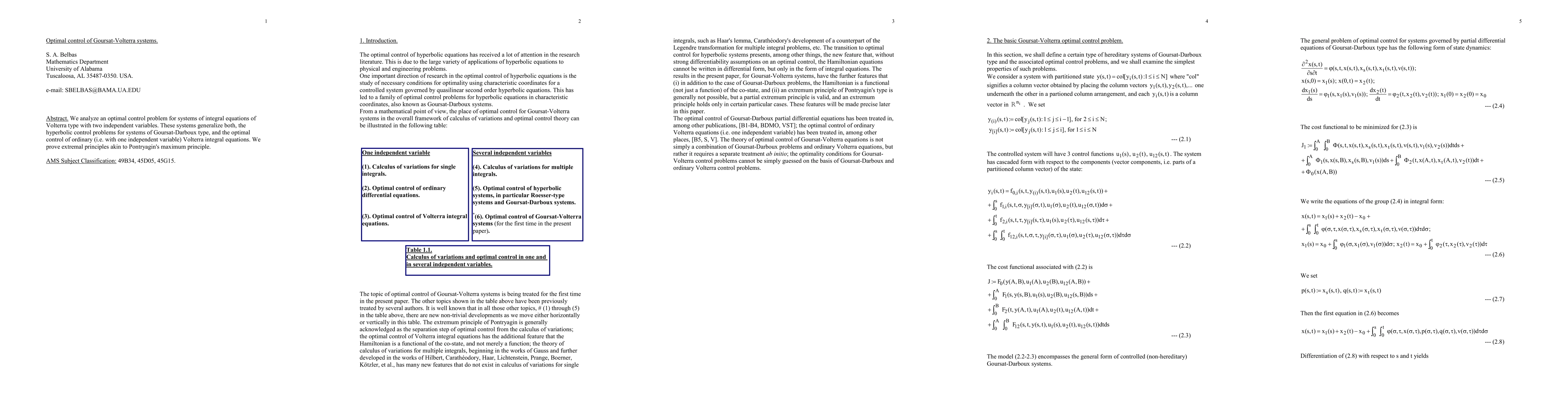 This paper investigates optimal control for Volterra integral equations with two independent variables, extending control methods to include hyperbolic Goursat-Darboux systems and single-variable Volterra equations. The study establishes extremal principles similar to Pontryagin's maximum principle for these generalized systems.