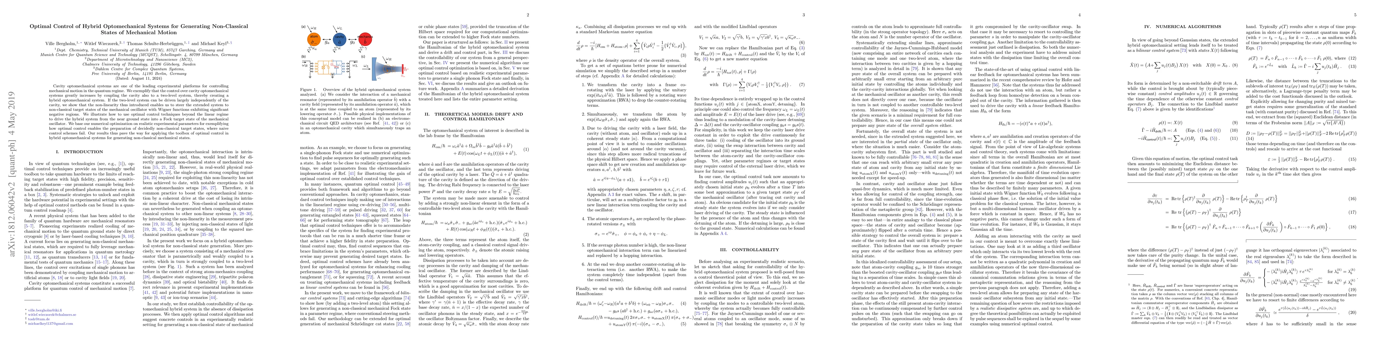 This paper demonstrates the enhanced control of hybrid optomechanical systems by coupling a cavity to both a mechanical oscillator and a two-level system, enabling the generation of non-classical states of mechanical motion. Optimal control techniques are used to drive the system from its ground state to a Fock target state, showcasing the potential of this approach over traditional control methods.