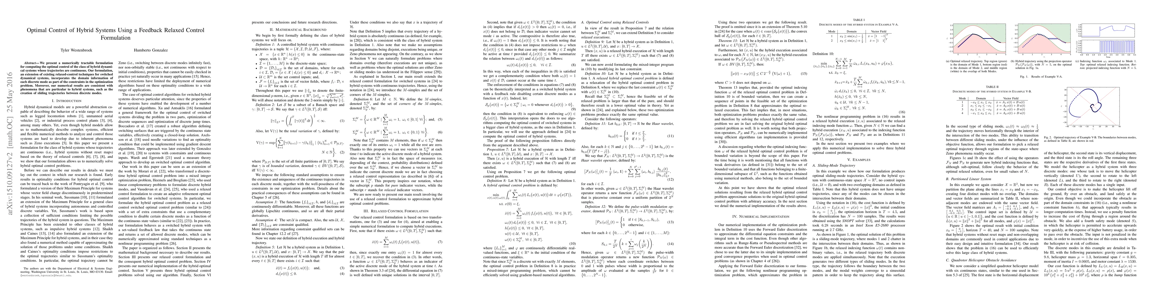 This paper proposes a numerically feasible method for determining the optimal control of continuous hybrid dynamical systems, extending relaxed-control techniques to incorporate discrete mode domain information. The results demonstrate the method's ability to handle hybrid system phenomena like sliding trajectories between discrete modes.