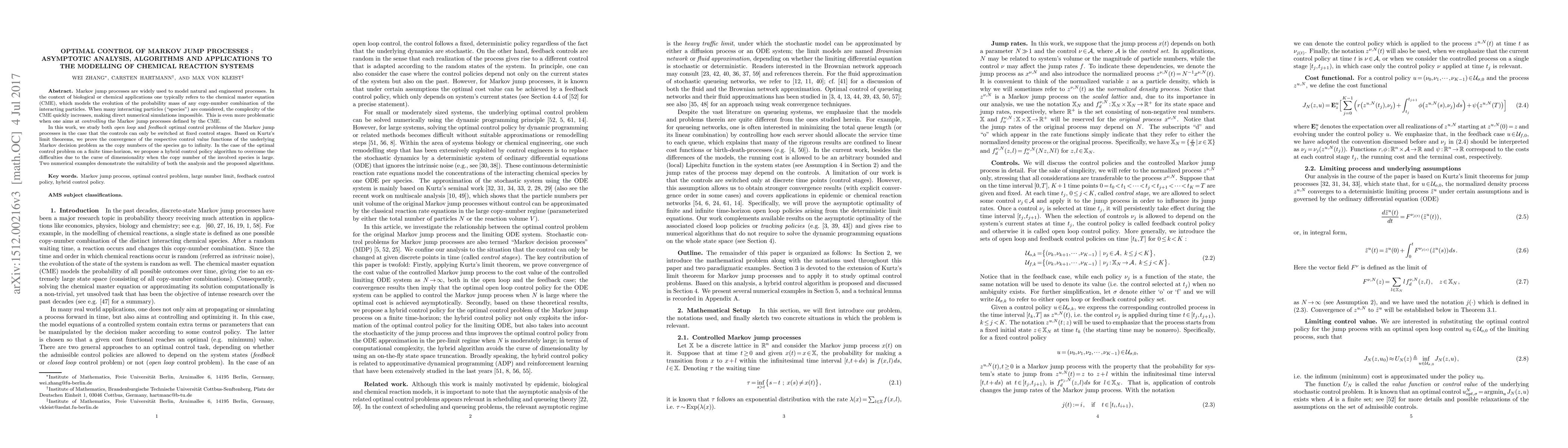 Researchers developed an optimal control method for Markov jump processes to model chemical reaction systems, overcoming complexity due to large numbers of interacting particles.