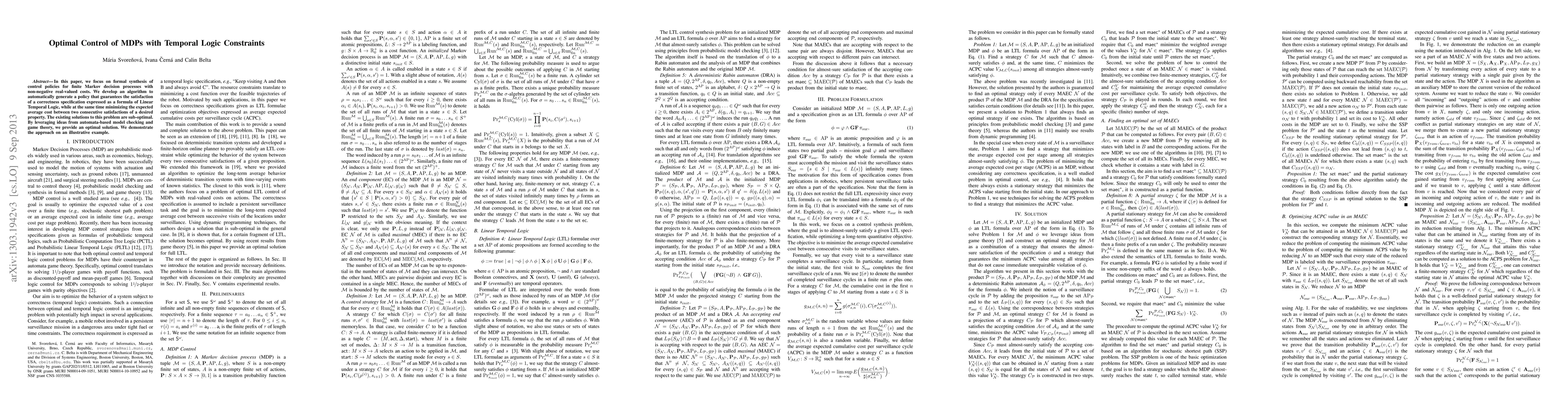 In this paper, we focus on formal synthesis of control policies for finite Markov decision processes with non-negative real-valued costs. We develop an algorithm to automatically generate a policy that guarantees the satisfaction of a correctness specification expressed as a formula of Linear Temporal Logic, while at the same time minimizing the expected average cost between two consecutive satisfactions of a desired property. The existing solutions to this problem are sub-optimal. By leveraging ideas from automata-based model checking and game theory, we provide an optimal solution. We demonstrate the approach on an illustrative example.
