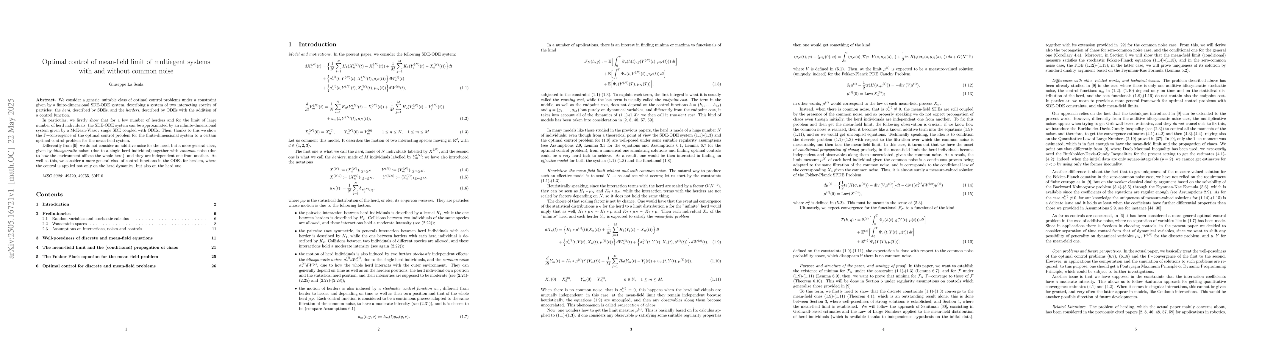This study contributes to the understanding of optimal control in multiagent systems with complex noise structures and control mechanisms, which has applications in fields such as economics, social sciences, and autonomous systems.