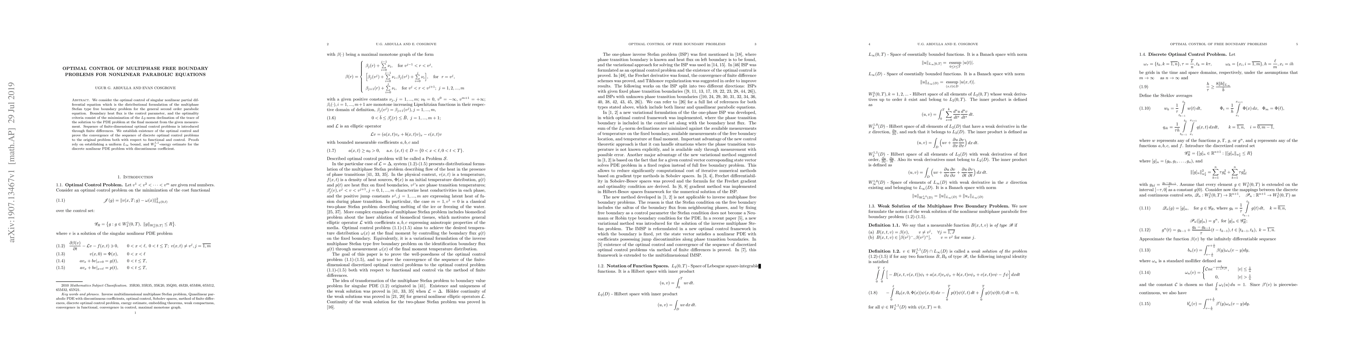 This paper studies the optimal control of a singular nonlinear partial differential equation modeling a multiphase Stefan type free boundary problem. The control is the boundary heat flux, and the goal is to minimize the $L_2$-norm deviation of the solution's trace at the final time from a given measurement. The authors prove the existence of optimal control and establish the convergence of a sequence of discrete optimal control problems to the original problem.
