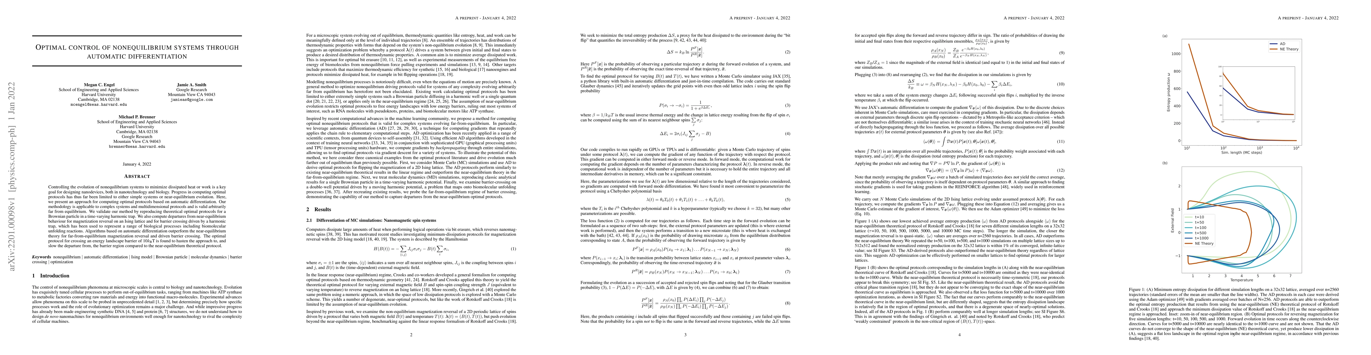 This paper introduces an optimal control methodology for nonequilibrium systems using automatic differentiation, applicable to complex systems and valid far from equilibrium. The method outperforms near-equilibrium theories in scenarios like magnetization reversal and barrier crossing, demonstrating its effectiveness in designing nanodevices.
