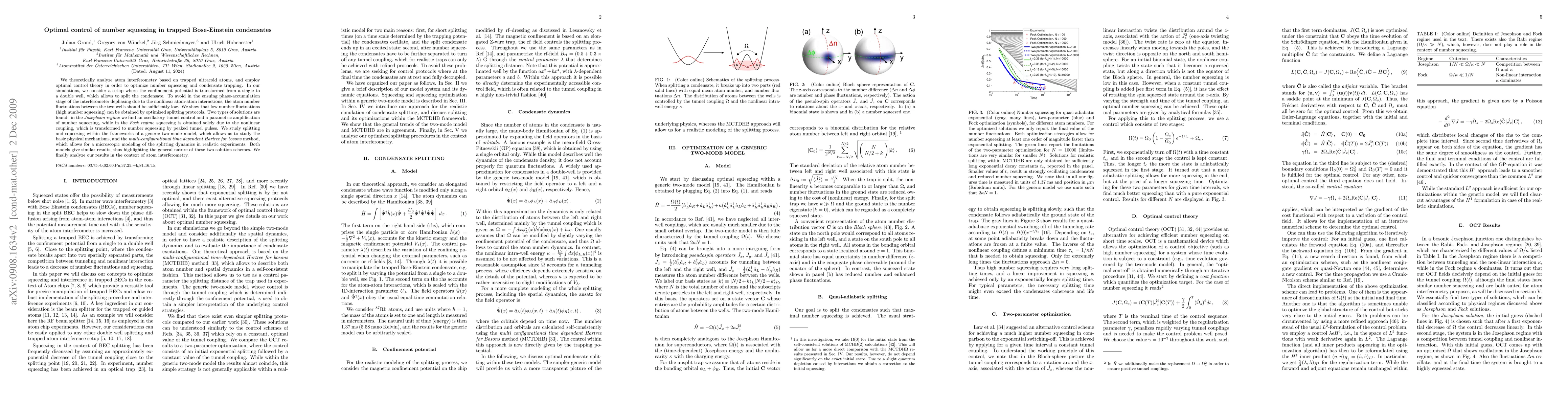 Researchers optimized number squeezing in trapped Bose-Einstein condensates using optimal control theory, finding two solution schemes that enhance squeezing in the Josephson and Fock regimes.