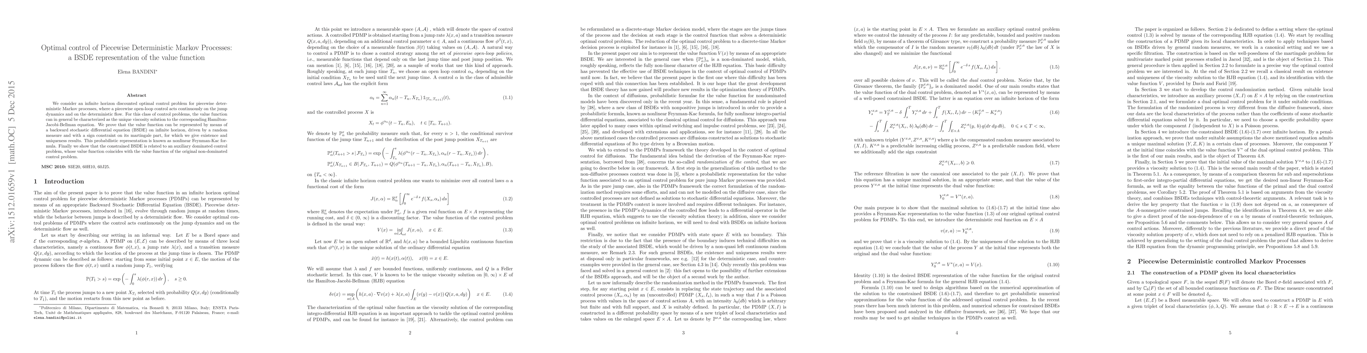 This paper studies optimal control for infinite horizon piecewise deterministic Markov processes, showing that the value function is represented by a backward stochastic differential equation (BSDE) driven by a random measure. The BSDE formulation is linked to an auxiliary dominated control problem, providing a probabilistic representation known as the nonlinear Feynman-Kac formula.