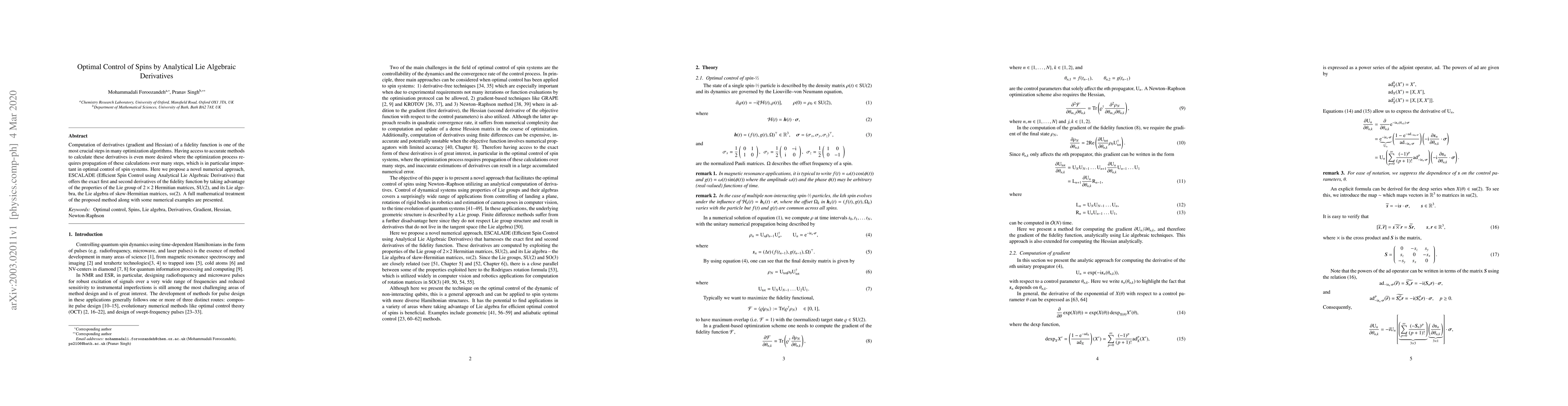 Computation of derivatives (gradient and Hessian) of a fidelity function is one of the most crucial steps in many optimization algorithms. Having access to accurate methods to calculate these derivatives is even more desired where the optimization process requires propagation of these calculations over many steps, which is in particular important in optimal control of spin systems. Here we propose a novel numerical approach, ESCALADE (Efficient Spin Control using Analytical Lie Algebraic Derivatives) that offers the exact first and second derivatives of the fidelity function by taking advantage of the properties of the Lie group of $2\times 2$ Hermitian matrices, $\mathrm{SU}(2)$, and its Lie algebra, the Lie algebra of skew-Hermitian matrices, $\mathfrak{su}(2)$. A full mathematical treatment of the proposed method along with some numerical examples are presented.