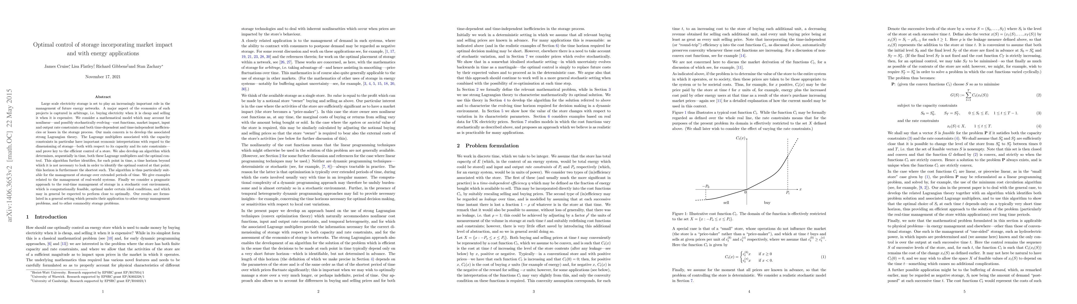 Large scale electricity storage is set to play an increasingly important role in the management of future energy networks. A major aspect of the economics of such projects is captured in arbitrage, i.e. buying electricity when it is cheap and selling it when it is expensive. We consider a mathematical model which may account for nonlinear---and possibly stochastically evolving---cost functions, market impact, input and output rate constraints and both time-dependent and time-independent inefficiencies or losses in the storage process. We develop an algorithm which is maximally efficient in the sense that it incorporates the result that, at each point in time, the optimal management decision depends only a finite, and typically short, time horizon. We give examples related to the management of a real-world system. Finally we consider a model in which the associated costs evolve stochastically in time. Our results are formulated in a perfectly general setting which permits their application to other commodity storage problems.