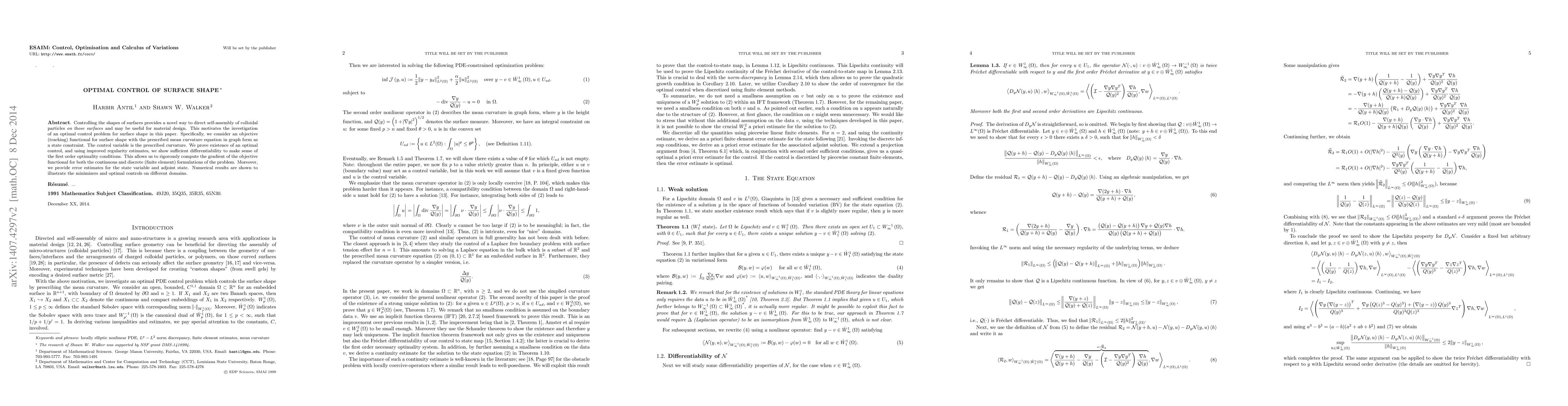 Researchers developed a method to control surface shape for self-assembly of colloidal particles, proving existence and differentiability of optimal controls for optimizing surface shapes.