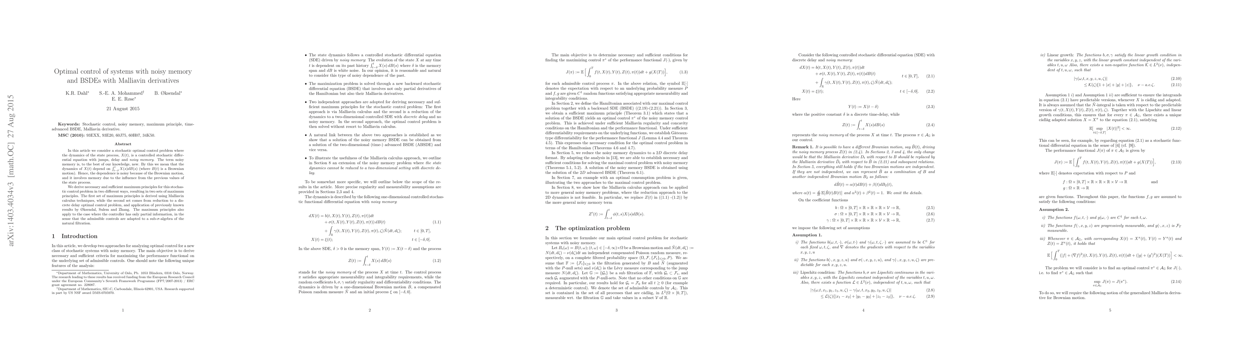 In this article we consider a stochastic optimal control problem where the dynamics of the state process, $X(t)$, is a controlled stochastic differential equation with jumps, delay and \emph{noisy memory}. The term noisy memory is, to the best of our knowledge, new. By this we mean that the dynamics of $X(t)$ depend on $\int_{t-\delta}^t X(s) dB(s)$ (where $B(t)$ is a Brownian motion). Hence, the dependence is noisy because of the Brownian motion, and it involves memory due to the influence from the previous values of the state process. We derive necessary and sufficient maximum principles for this stochastic control problem in two different ways, resulting in two sets of maximum principles. The first set of maximum principles is derived using Malliavin calculus techniques, while the second set comes from reduction to a discrete delay optimal control problem, and application of previously known results by {\O}ksendal, Sulem and Zhang. The maximum principles also apply to the case where the controller only has partial information, in the sense that the admissible controls are adapted to a sub-$\sigma$-algebra of the natural filtration.