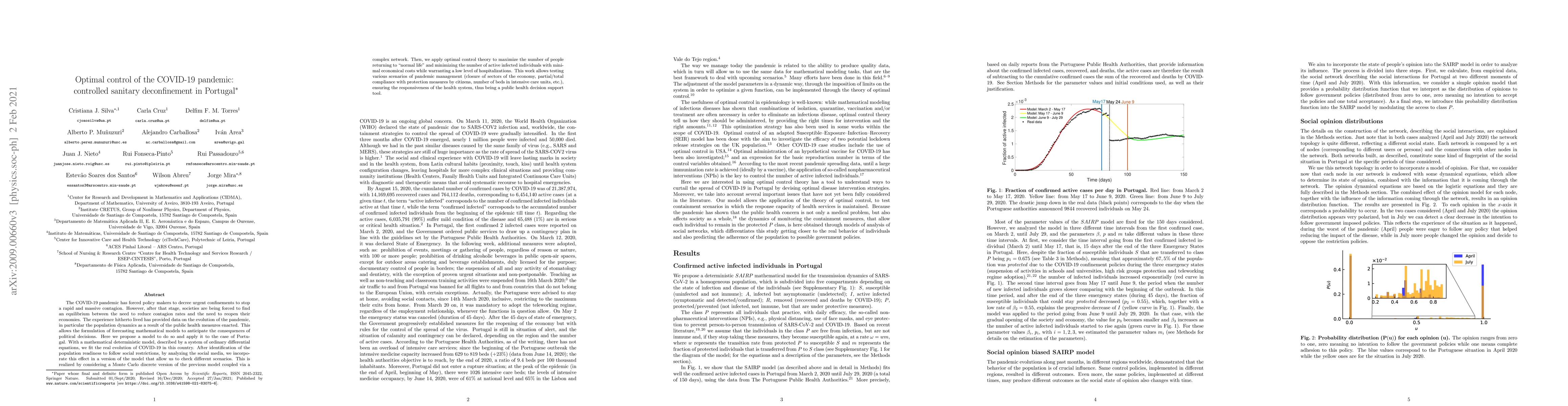 The COVID-19 pandemic has forced policy makers to decree urgent confinements to stop a rapid and massive contagion. However, after that stage, societies are being forced to find an equilibrium between the need to reduce contagion rates and the need to reopen their economies. The experience hitherto lived has provided data on the evolution of the pandemic, in particular the population dynamics as a result of the public health measures enacted. This allows the formulation of forecasting mathematical models to anticipate the consequences of political decisions. Here we propose a model to do so and apply it to the case of Portugal. With a mathematical deterministic model, described by a system of ordinary differential equations, we fit the real evolution of COVID-19 in this country. After identification of the population readiness to follow social restrictions, by analyzing the social media, we incorporate this effect in a version of the model that allow us to check different scenarios. This is realized by considering a Monte Carlo discrete version of the previous model coupled via a complex network. Then, we apply optimal control theory to maximize the number of people returning to "normal life" and minimizing the number of active infected individuals with minimal economical costs while warranting a low level of hospitalizations. This work allows testing various scenarios of pandemic management (closure of sectors of the economy, partial/total compliance with protection measures by citizens, number of beds in intensive care units, etc.), ensuring the responsiveness of the health system, thus being a public health decision support tool.