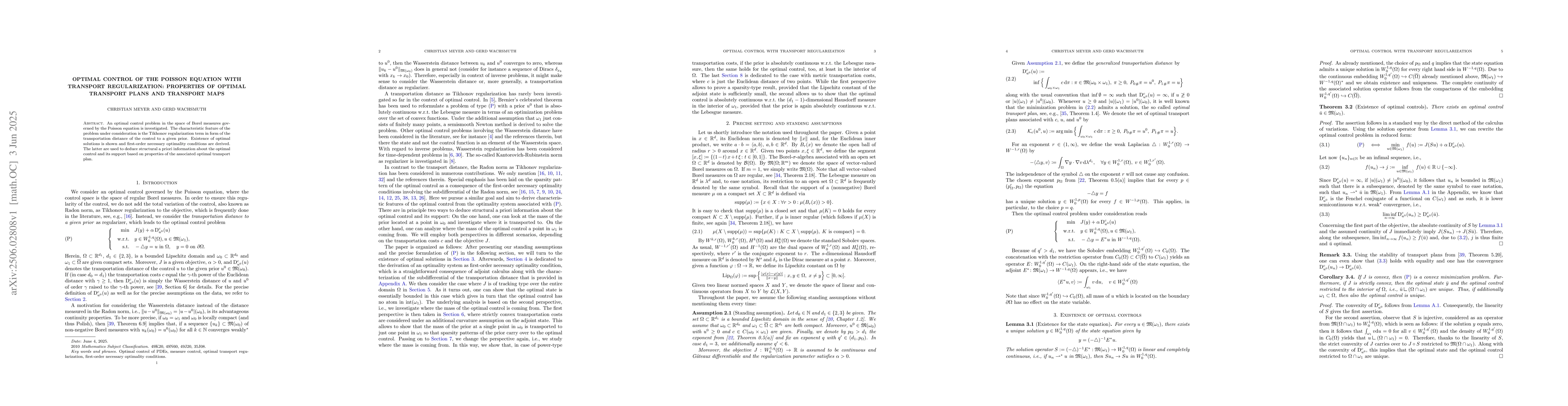 An optimal control problem in the space of Borel measures governed by the Poisson equation is investigated. The characteristic feature of the problem under consideration is the Tikhonov regularization term in form of the transportation distance of the control to a given prior. Existence of optimal solutions is shown and first-order necessary optimality conditions are derived. The latter are used to deduce structural a priori information about the optimal control and its support based on properties of the associated optimal transport plan.