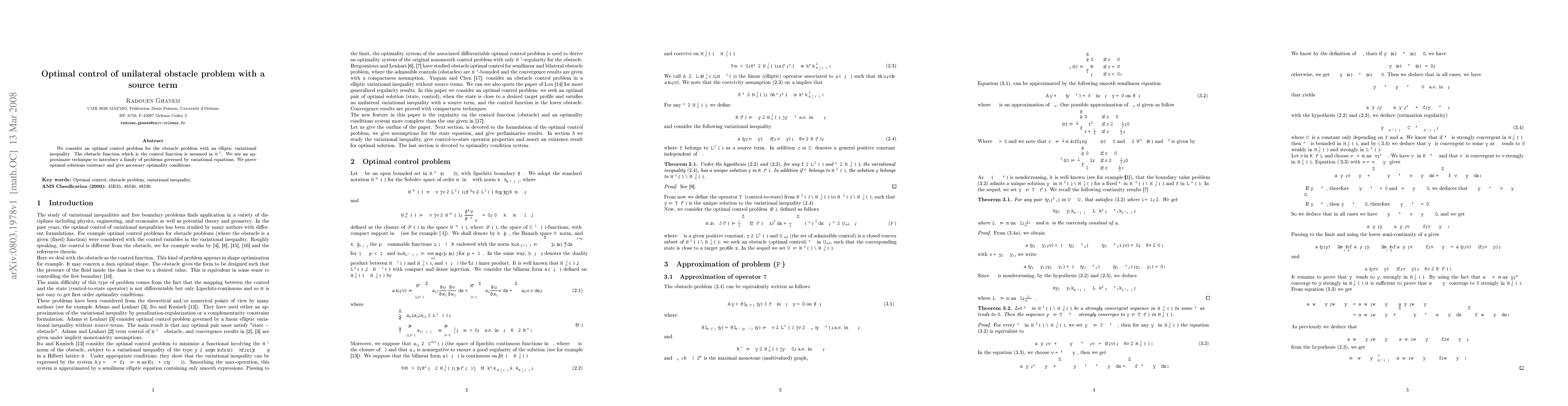 Researchers developed an optimal control method for navigating around obstacles with a source term, proving existence of solutions and providing necessary conditions. The approach uses variational equations to approximate the problem.