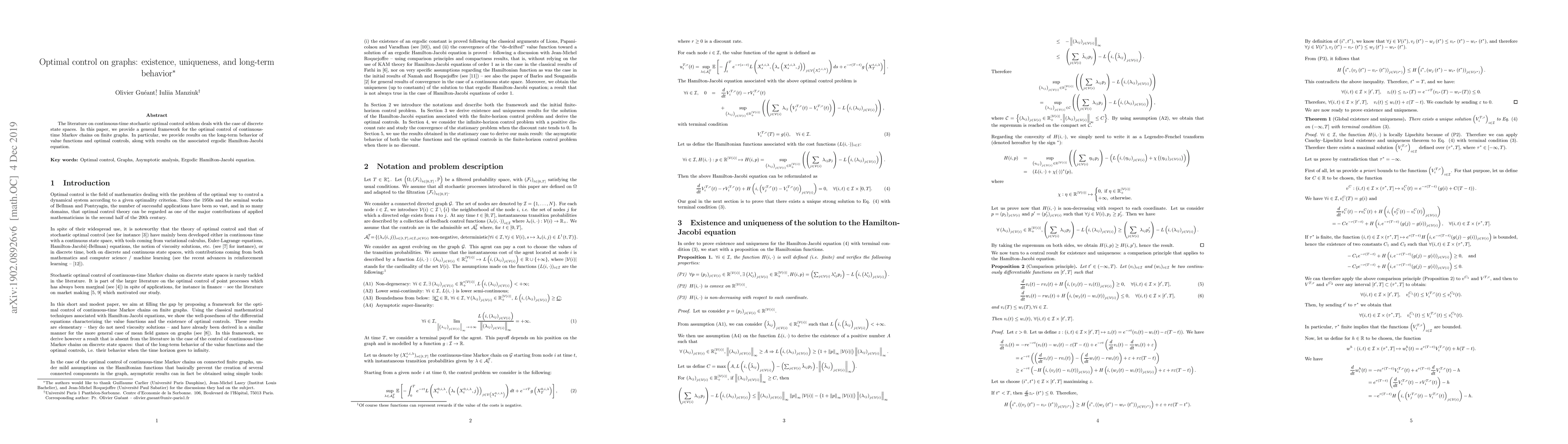 This paper develops a framework for optimal control of continuous-time Markov chains on finite graphs, focusing on the existence, uniqueness, and long-term behavior of value functions and optimal controls, alongside an associated ergodic Hamilton-Jacobi equation.
