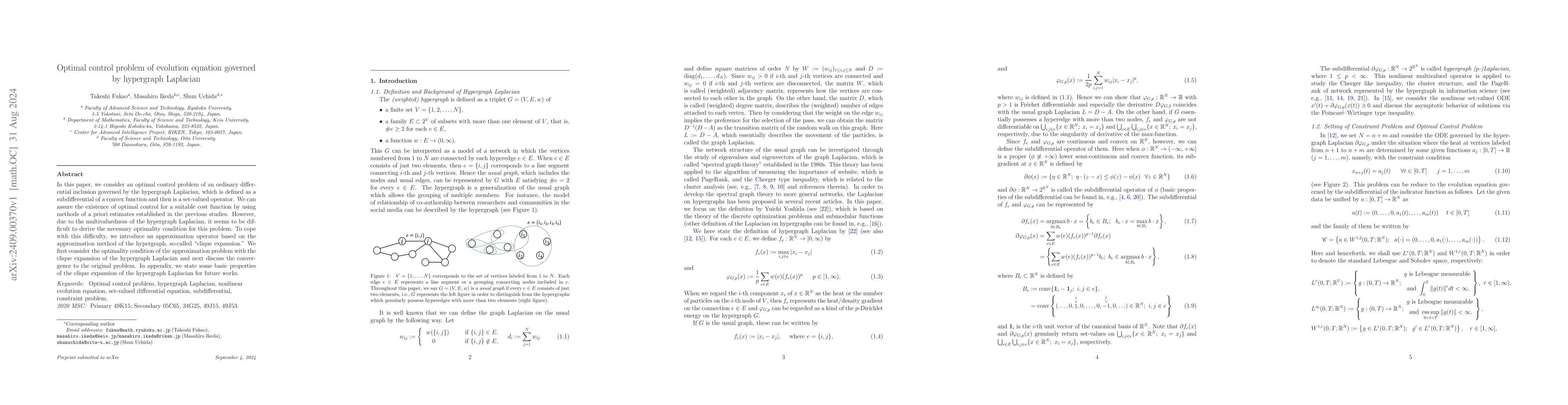 This paper tackles an optimal control problem for a differential inclusion governed by a hypergraph Laplacian. The authors establish the existence of optimal control using established methods but address the challenge of deriving necessary optimality conditions due to the multivalued nature of the hypergraph Laplacian. They introduce a "clique expansion" approximation method to derive the optimality condition and discuss its convergence to the original problem.