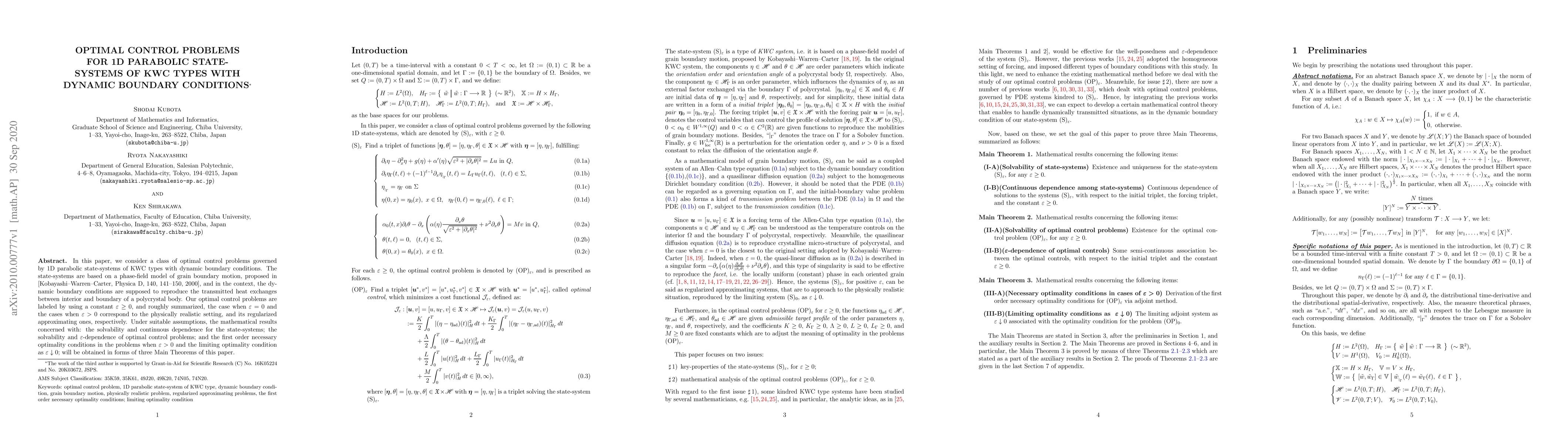 In this paper, we consider a class of optimal control problems governed by 1D parabolic state-systems of KWC types with dynamic boundary conditions. The state-systems are based on a phase-field model of grain boundary motion, proposed in [Kobayashi--Warren--Carter, Physica D, 140, 141--150, 2000], and in the context, the dynamic boundary conditions are supposed to reproduce the transmitted heat exchanges between interior and boundary of a polycrystal body. Our optimal control problems are labeled by using a constant $ \varepsilon \geq 0 $, and roughly summarized, the case when $ \varepsilon = 0 $ and the cases when $ \varepsilon > 0 $ correspond to the physically realistic setting, and its regularized approximating ones, respectively. Under suitable assumptions, the mathematical results concerned with: the solvability and continuous dependence for the state-systems; the solvability and $ \varepsilon $-dependence of optimal control problems; and the first order necessary optimality conditions in the problems when $ \varepsilon > 0 $ and the limiting optimality condition as $ \varepsilon \downarrow 0 $; will be obtained in forms of three Main Theorems of this paper.