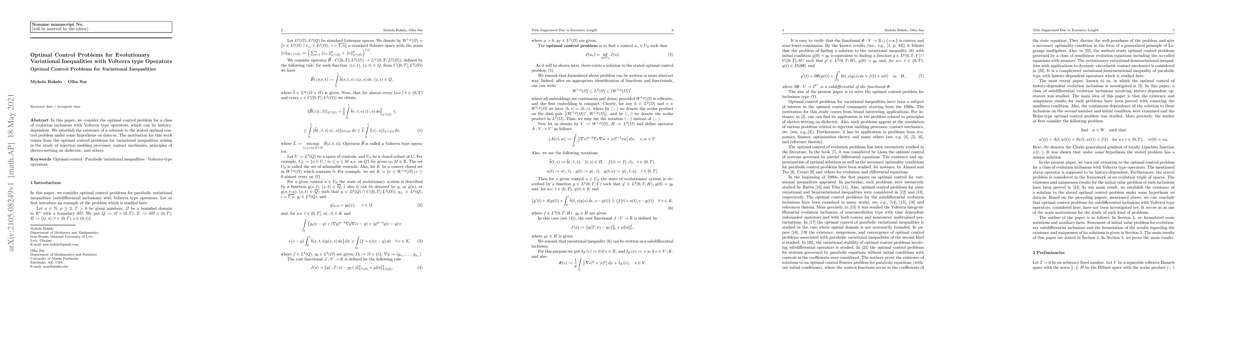 This paper investigates optimal control problems for evolutionary variational inequalities involving Volterra type operators, establishing solution existence under specified conditions. The research is motivated by applications in injection molding, contact mechanics, and electro-wetting on dielectric.