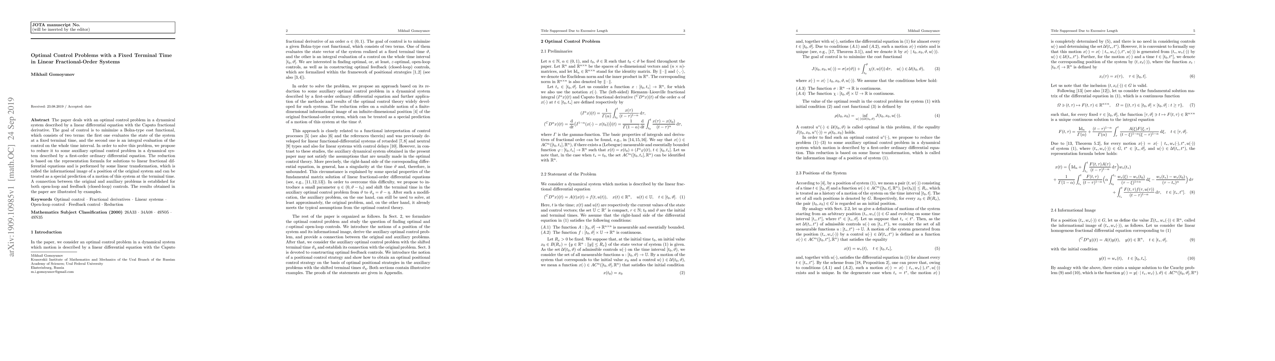 This paper addresses optimal control in linear fractional-order systems using Caputo derivatives, aiming to minimize a Bolza-type cost functional. It proposes a reduction method to solve the problem by transforming it into an auxiliary optimal control problem using a linear transformation based on the informational image of the system's state at the terminal time.
