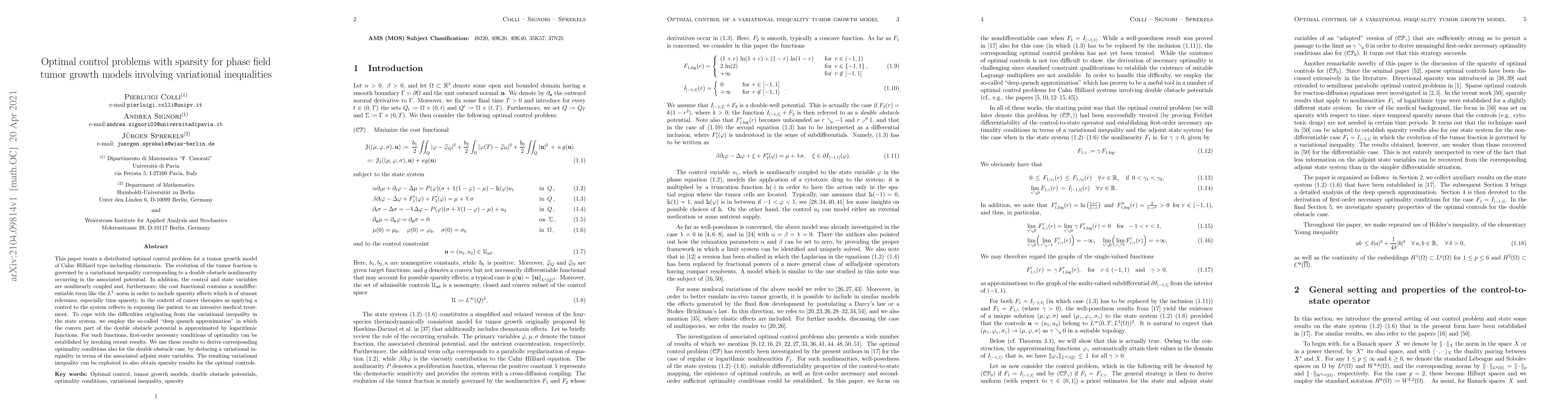 This paper develops a new approach to optimize control for tumor growth models with sparsity constraints, using a modified variational inequality and logarithmic functions to simplify the problem.