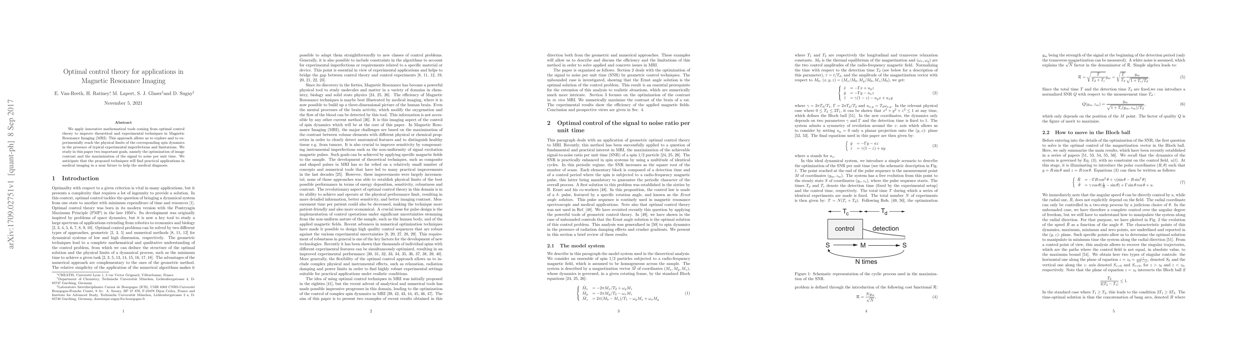 Researchers applied optimal control theory to Magnetic Resonance Imaging (MRI) to optimize image contrast and signal quality, aiming to improve medical diagnosis techniques.