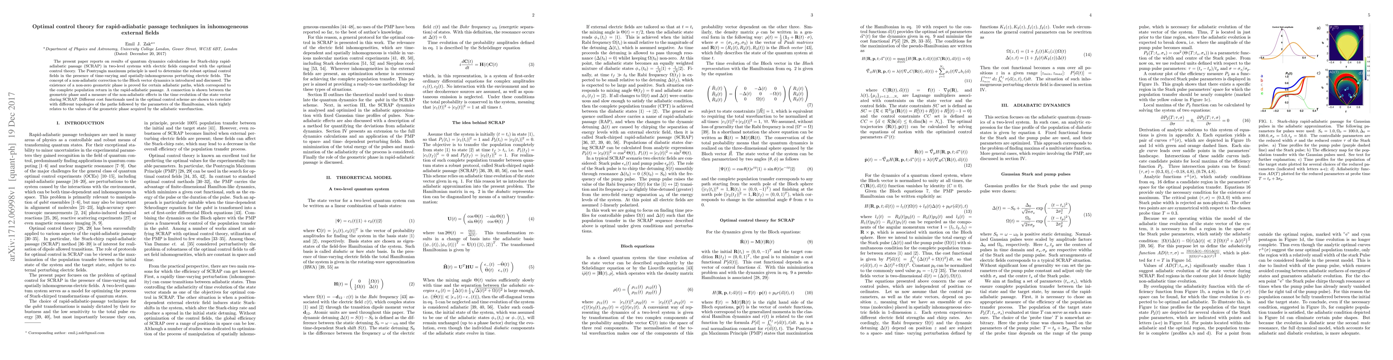 The present paper reports on results of quantum dynamics calculations for Stark-chirp rapid-adiabatic passage (SCRAP) in two-level systems with electric fields computed with the optimal control theory. The Pontryagin maximum principle is used to determine the robust optimal control fields in the presence of time-varying and spatially-inhomogeneous perturbing electric fields. The concept of a non-adiabatic correction to the Bloch vector dynamics is introduced and discussed. The existence of a non-zero geometric phase is proved for certain adiabatic paths, which correspond to the complete population return in the rapid-adiabatic passage. A connection is shown between the geometric phase and a measure of the non-adiabatic effects in the time evolution of the state vector during SCRAP. Different cost functionals used in the optimal control scheme are shown to correlate with different topologies of the paths followed by the parameters of the Hamiltonian, which tightly relates to the values of the geometric phase acquired by the adiabatic wavefunction.