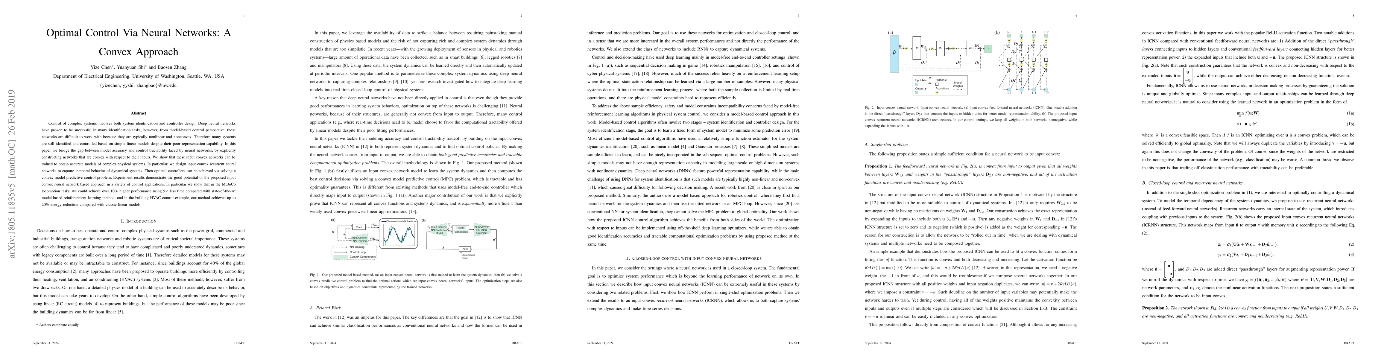 This paper proposes a method to construct convex neural networks for optimal control of complex systems, demonstrating that these networks can accurately model physical systems and enable efficient convex model predictive control. The approach shows significant performance improvements in locomotion tasks and energy reduction in HVAC control compared to traditional methods.