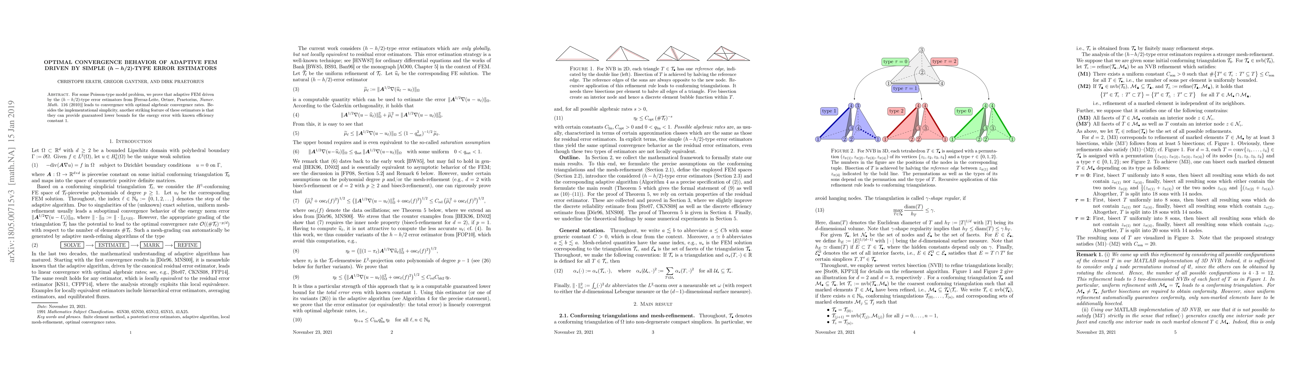 This paper proves that adaptive finite element methods (FEM) utilizing (h-h/2)-type error estimators achieve optimal algebraic convergence rates for Poisson-type model problems. These estimators are simple to implement and provide guaranteed lower bounds for the energy error with an efficiency constant of 1.
