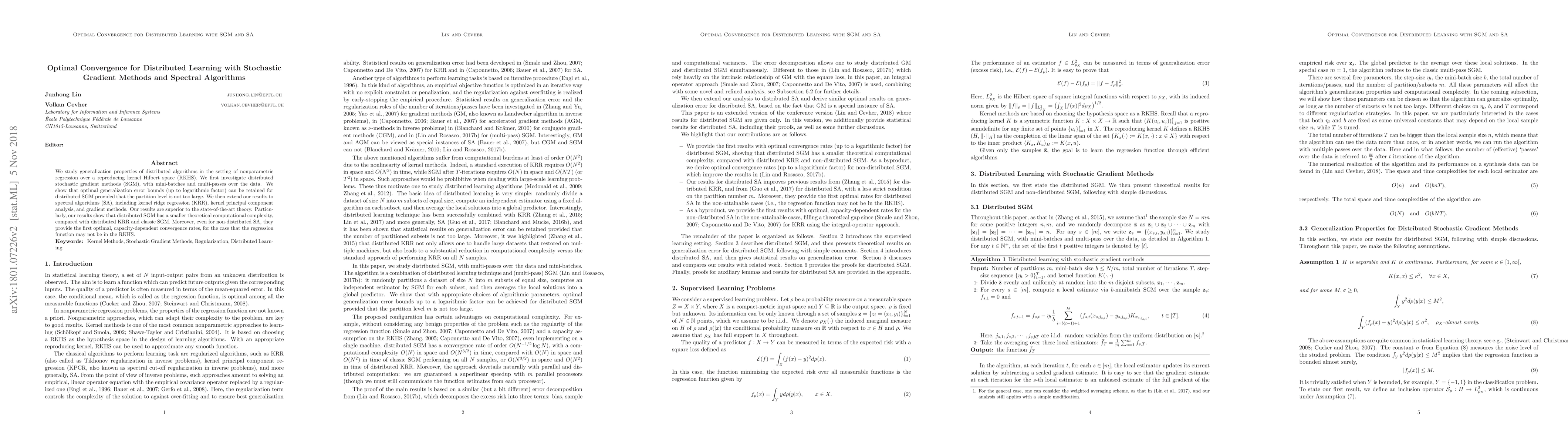 This paper investigates optimal convergence properties of distributed algorithms for nonparametric regression, focusing on stochastic gradient methods and spectral-regularization algorithms. It demonstrates that distributed SGM maintains optimal generalization error bounds under certain partition conditions, and provides superior theoretical computational complexity compared to distributed KRR and classic SGM.