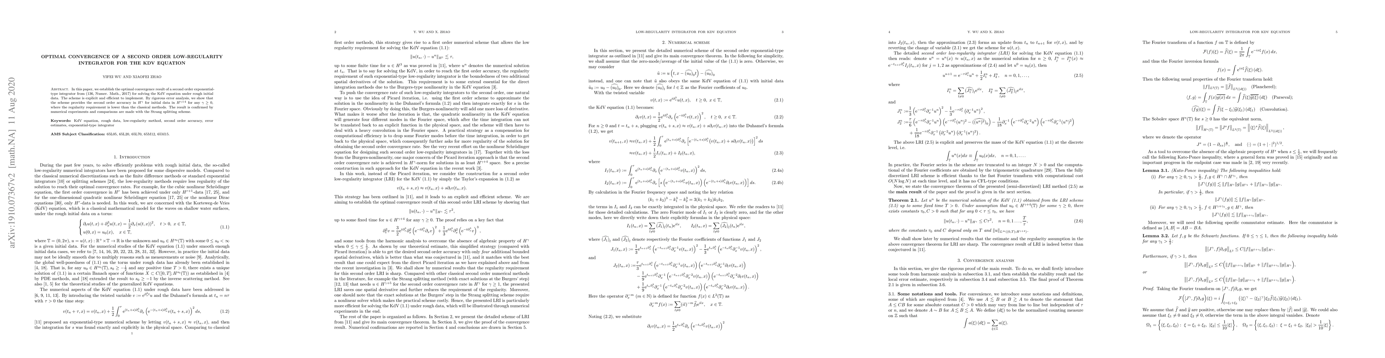 This research paper presents an optimal convergence analysis of a second-order, explicit, and efficient numerical integrator for the KdV equation under low-regularity initial data. The integrator, an improved version from (136, Numer. Math., 2017), achieves second-order accuracy in H^γ for initial data in H^(γ+4), where γ ≥ 0. This regularity requirement is less stringent than traditional methods, confirmed through rigorous error analysis and numerical experiments, which also compare the scheme favorably with the Strang splitting method.