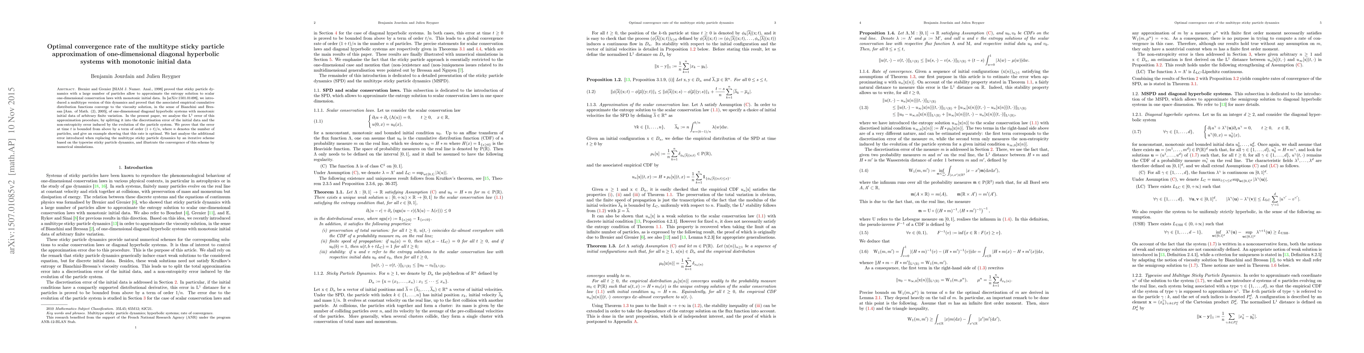 This paper investigates the optimal convergence rate of a multitype sticky particle approximation for one-dimensional diagonal hyperbolic systems with monotonic initial data. It proves that the L1 error is bounded by (1 + t)/n, where n is the number of particles, and demonstrates this rate's optimality with an example.