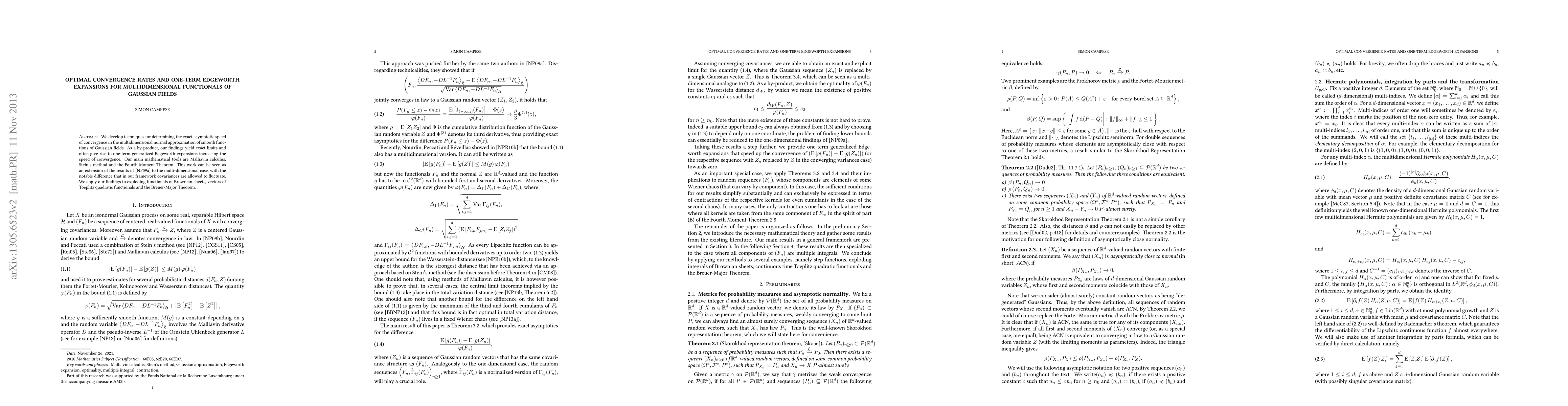 We develop techniques for determining the exact asymptotic speed of convergence in the multidimensional normal approximation of smooth functions of Gaussian fields. As a by-product, our findings yield exact limits and often give rise to one-term generalized Edgeworth expansions increasing the speed of convergence. Our main mathematical tools are Malliavin calculus, Stein's method and the Fourth Moment Theorem. This work can be seen as an extension of the results of arXiv:0803.0458 to the multi-dimensional case, with the notable difference that in our framework covariances are allowed to fluctuate. We apply our findings to exploding functionals of Brownian sheets, vectors of Toeplitz quadratic functionals and the Breuer-Major Theorem.