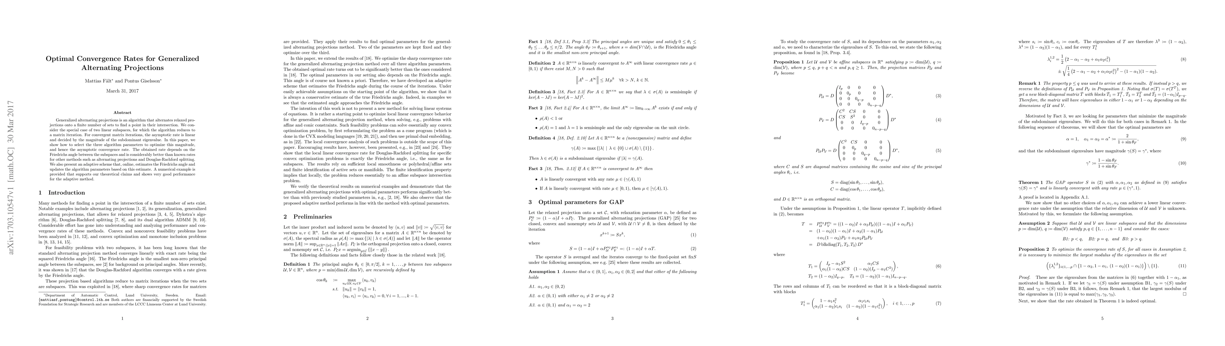 This paper optimizes the convergence rate of generalized alternating projections for intersecting linear subspaces by selecting algorithm parameters to minimize the subdominant eigenvalue's magnitude, leading to better rates than existing methods. An adaptive scheme is also introduced to dynamically adjust parameters based on the Friedrichs angle.