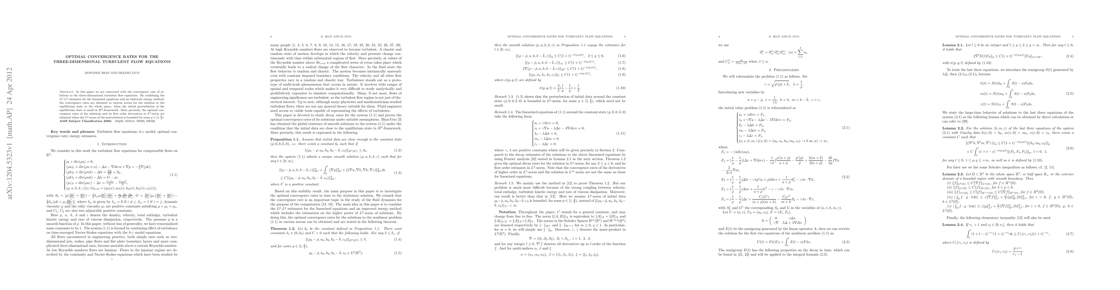 Research paper on the convergence rates of solutions to three-dimensional turbulent flow equations, finding optimal convergence rates in $L^2$-norm for small perturbations when $L^p$-norm is bounded for $p ein[1, 6/5)$.