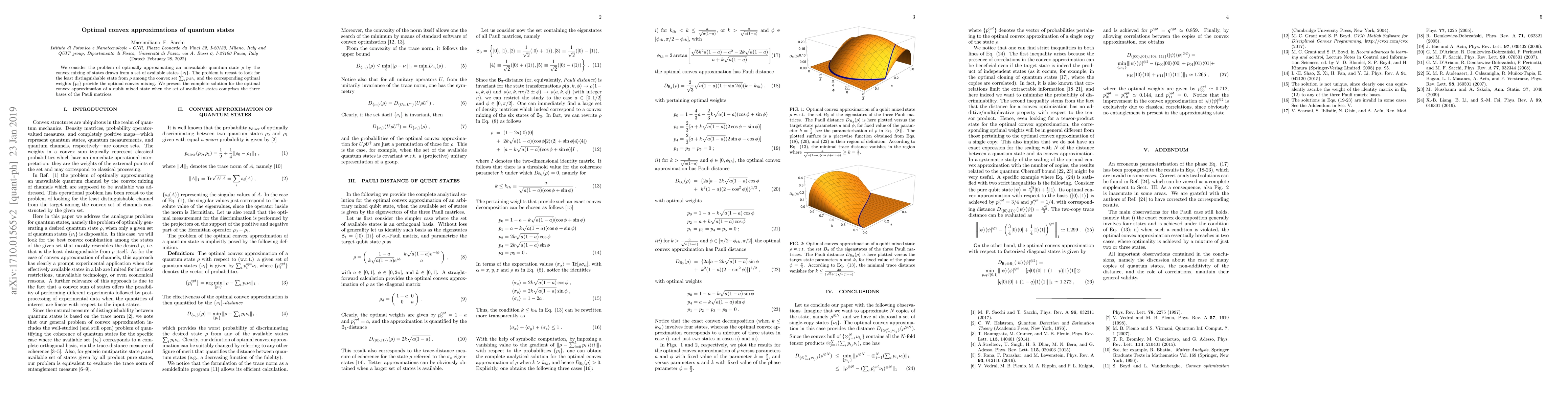 We consider the problem of optimally approximating an unavailable quantum state $\rho $ by the convex mixing of states drawn from a set of available states $\{ \nu_i\}$. The problem is recast to look for the least distinguishable state from $\rho $ among the convex set $\sum_i p_i \nu_i$, and the corresponding optimal weights $\{ p_i \}$ provide the optimal convex mixing. We present the complete solution for the optimal convex approximation of a qubit mixed state when the set of available states comprises the three bases of the Pauli matrices.