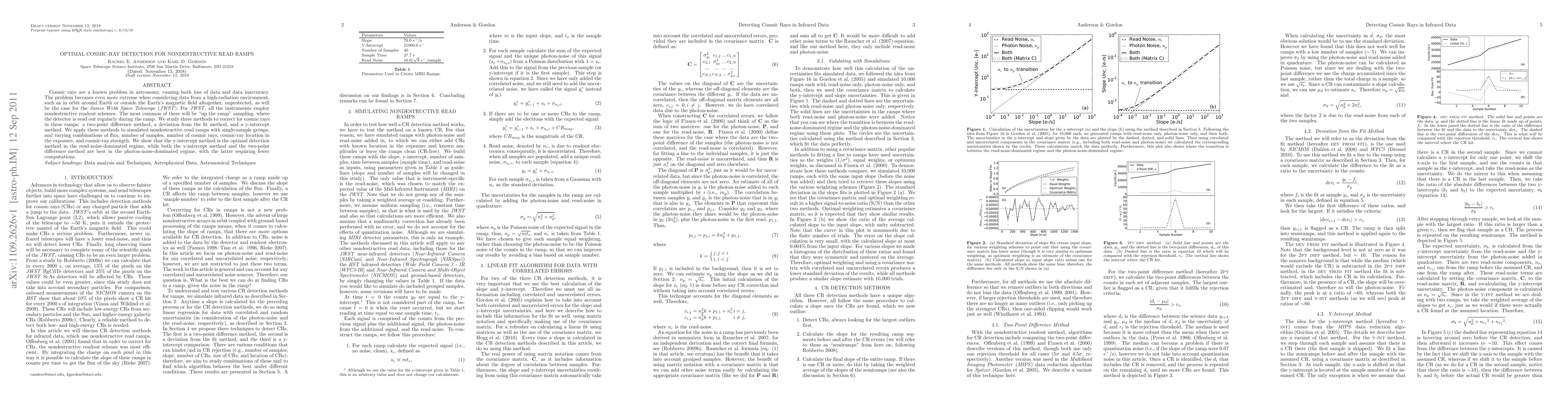 A study found that the y-intercept method is optimal for detecting cosmic rays in nondestructive read ramps, while two-point difference and deviation from fit methods perform well in photon-noise-dominated regimes.