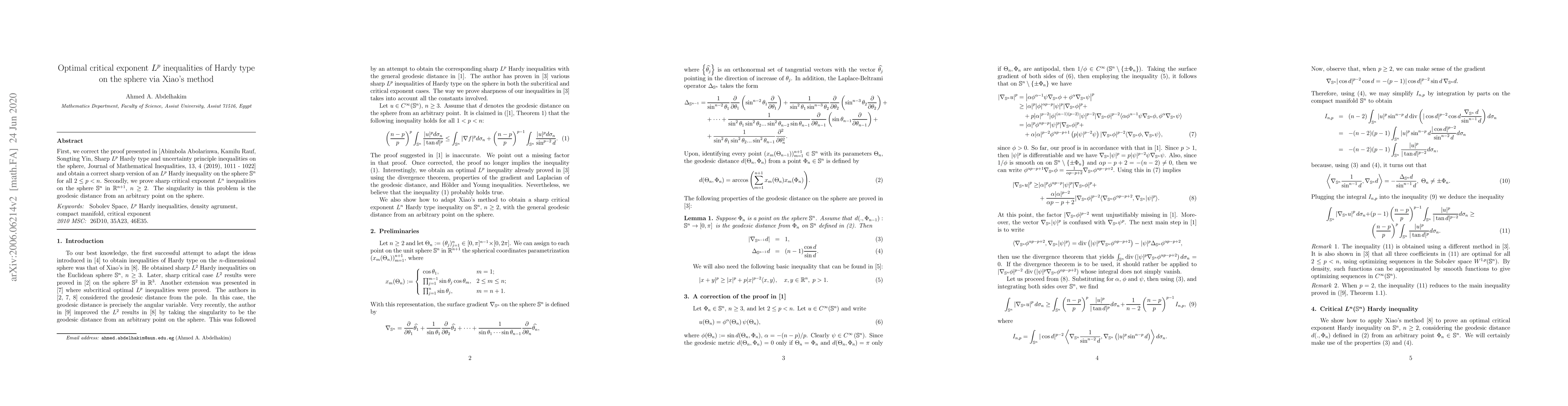 on the sphere, Journal of Mathematical Inequalities, 13, 4 (2019), 1011 - 1022]