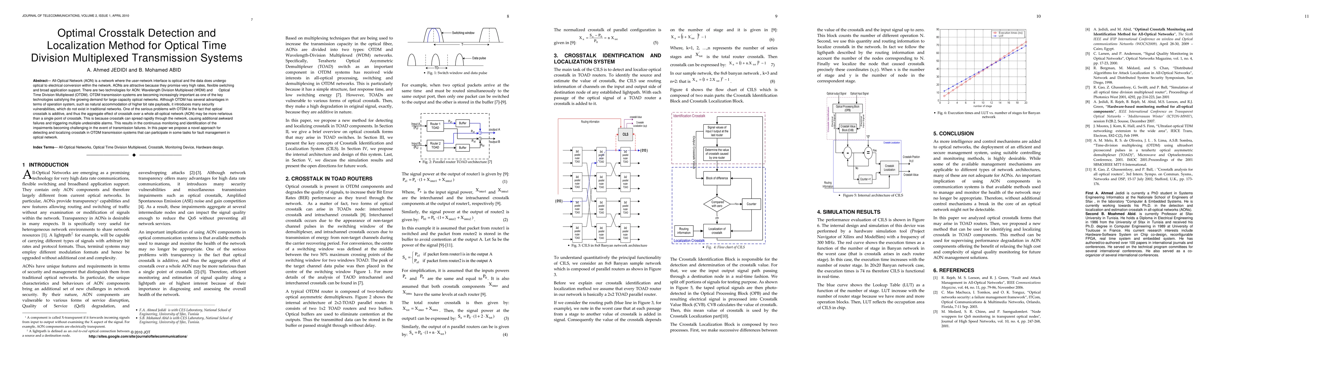 This paper proposes a novel method for detecting and localizing crosstalk in Optical Time Division Multiplexed (OTDM) transmission systems to address the security vulnerabilities introduced by additive crosstalk. The approach aims to facilitate fault management in all-optical networks by identifying and mitigating transmission impairments.