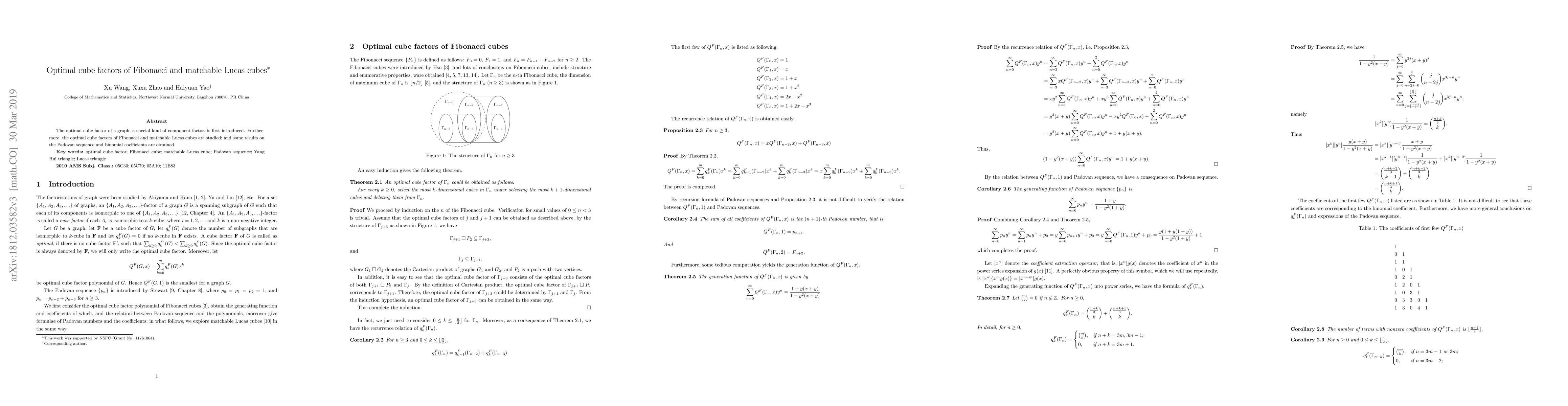 This paper introduces the concept of optimal cube factors in graphs and explores their application to Fibonacci and matchable Lucas cubes, deriving results related to the Padovan sequence and binomial coefficients.