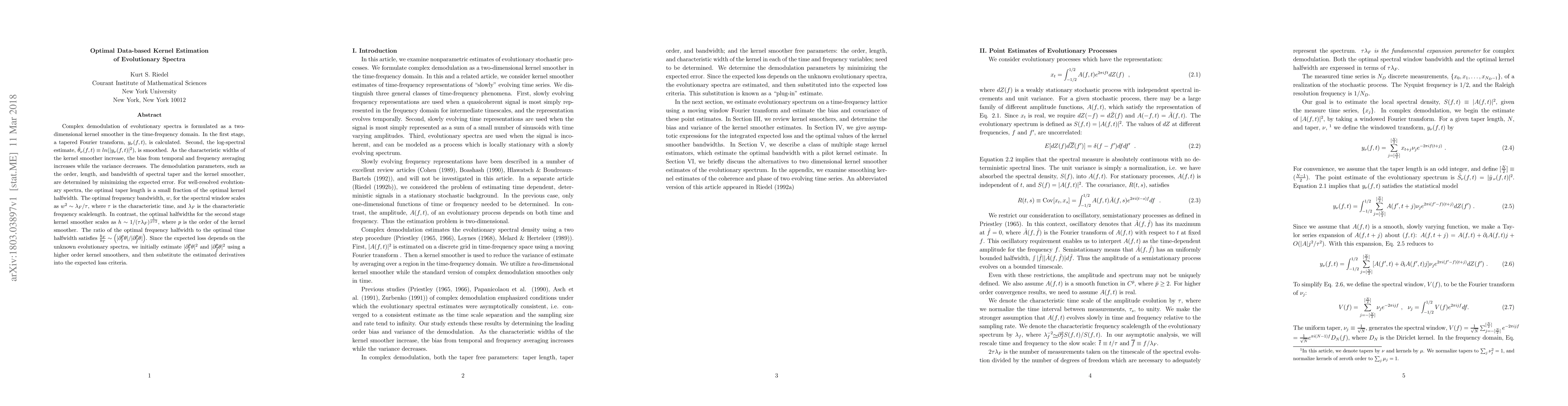 The paper develops a method for optimal data-based kernel estimation of evolutionary spectra, balancing bias and variance to improve demodulation accuracy. The optimal parameters depend on the order and characteristics of the spectral window, leading to improved resolution and reduced errors.
