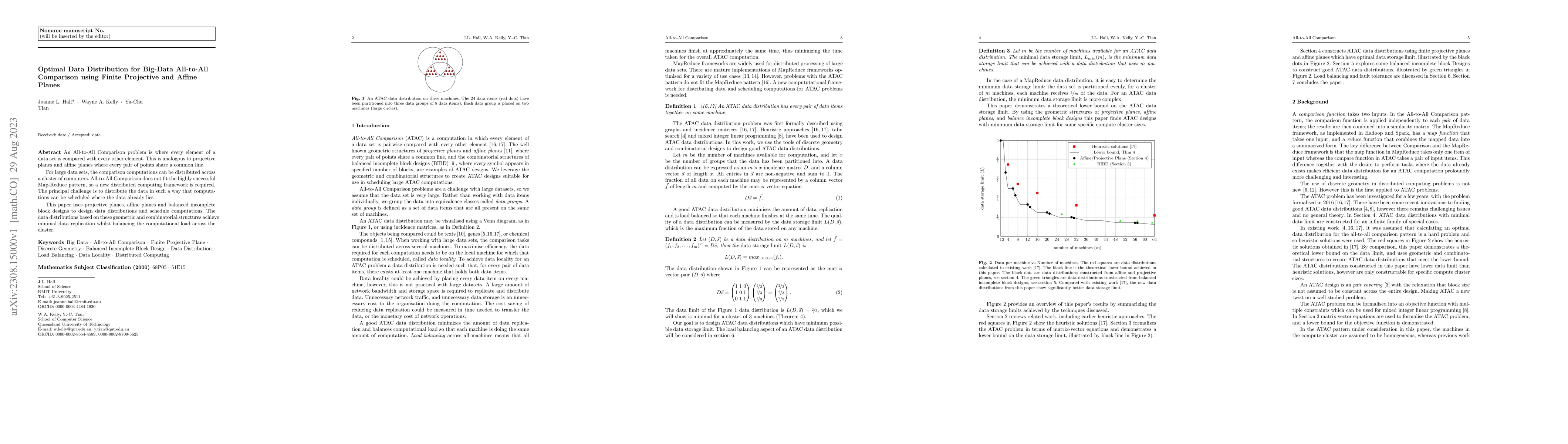 This paper proposes a novel distributed computing framework for solving All-to-All Comparison problems using projective and affine planes, aiming to minimize data replication and balance computational load across a cluster. It leverages geometric and combinatorial structures to achieve optimal data distribution.