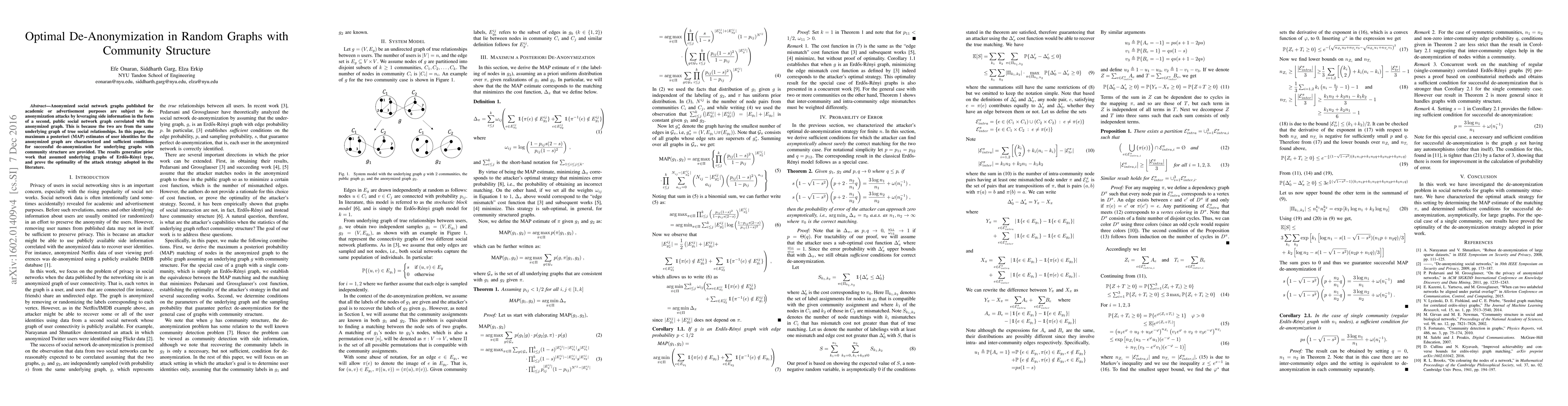 This paper characterizes the maximum a posteriori (MAP) estimates for de-anonymizing user identities in anonymized social networks and provides conditions for successful attacks in graphs with community structures. It generalizes previous work on Erdős-Rényi type graphs and proves the optimality of prior attack strategies.
