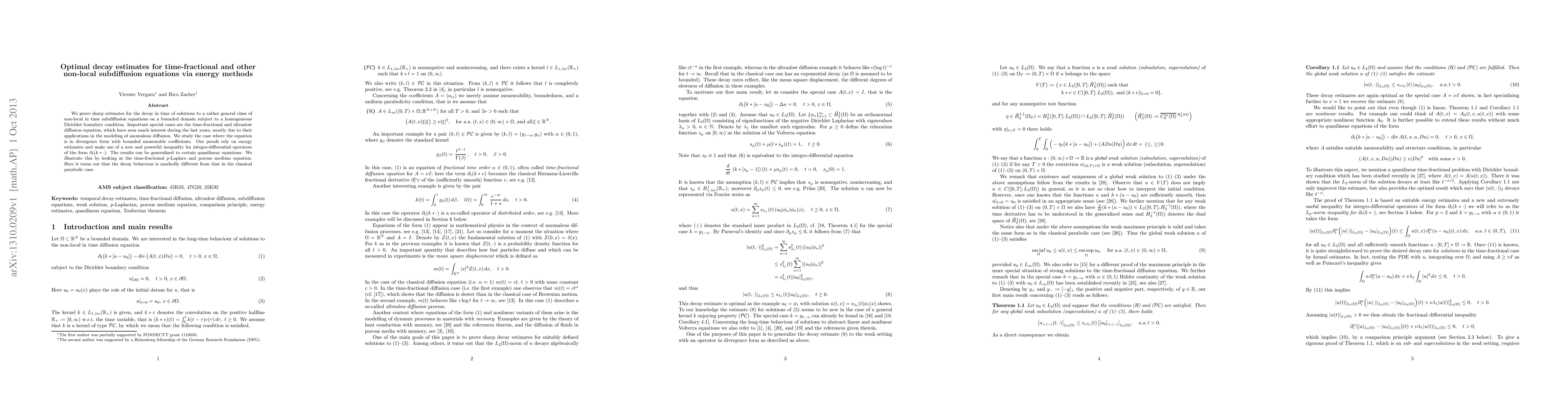 We prove sharp estimates for the decay in time of solutions to a rather general class of non-local in time subdiffusion equations on a bounded domain subject to a homogeneous Dirichlet boundary condition. Important special cases are the time-fractional and ultraslow diffusion equation, which have seen much interest during the last years, mostly due to their applications in the modeling of anomalous diffusion. We study the case where the equation is in divergence form with bounded measurable coefficients. Our proofs rely on energy estimates and make use of a new and powerful inequality for integro-differential operators of the form $\partial_t (k\ast \cdot)$. The results can be generalized to certain quasilinear equations. We illustrate this by looking at the time-fractional $p$-Laplace and porous medium equation. Here it turns out that the decay behaviour is markedly different from that in the classical parabolic case.