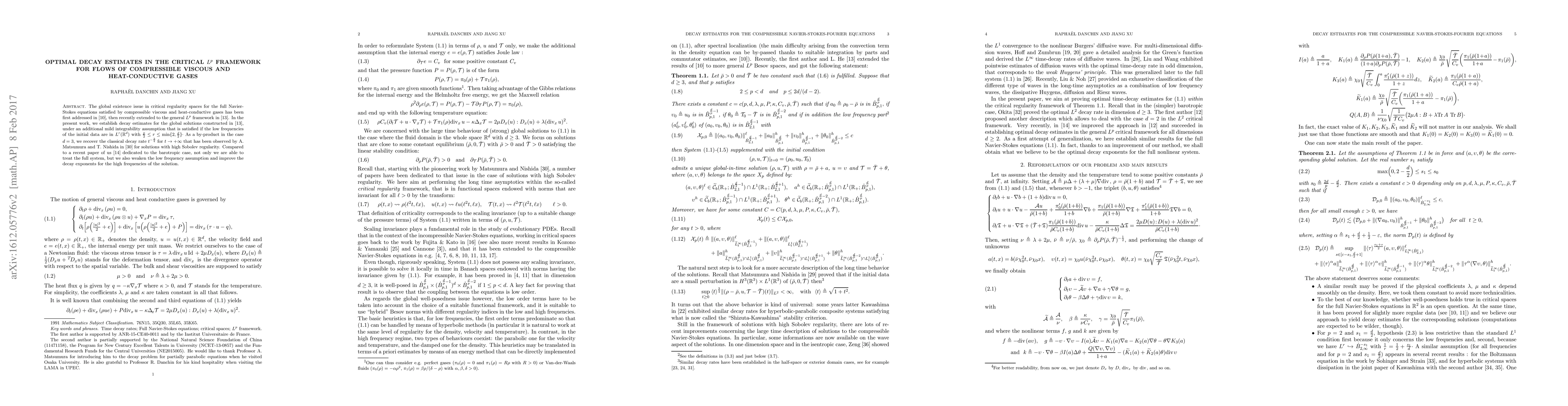 This paper establishes optimal decay estimates for global solutions of the Navier-Stokes equations governing compressible viscous and heat-conductive gases in the $L^p$ framework, improving upon previous results for high frequencies and extending the analysis to the full system rather than just the barotropic case.