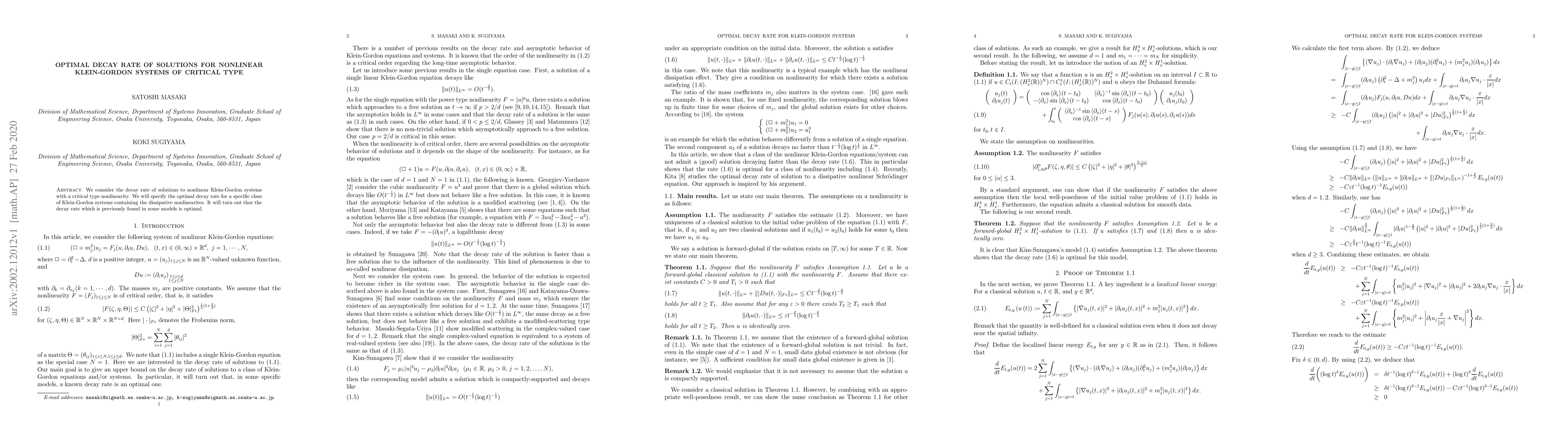 Summary: This paper investigates the decay rate of solutions for nonlinear Klein-Gordon systems with critical type nonlinearity, identifying the optimal decay rate for a specific class of these systems that include dissipative nonlinearities, confirming that previously found decay rates are indeed optimal.